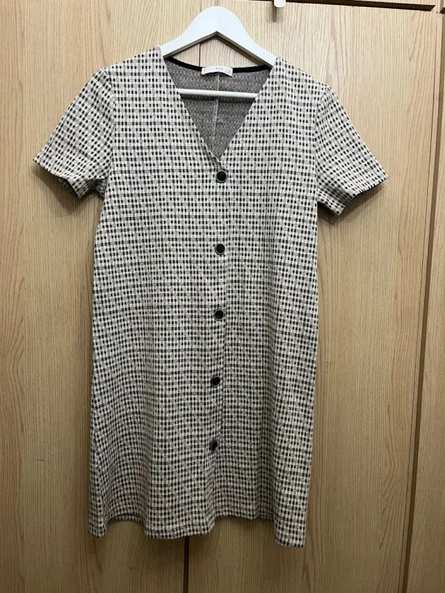 Vestido punto estampado cuadritos beige/marrón