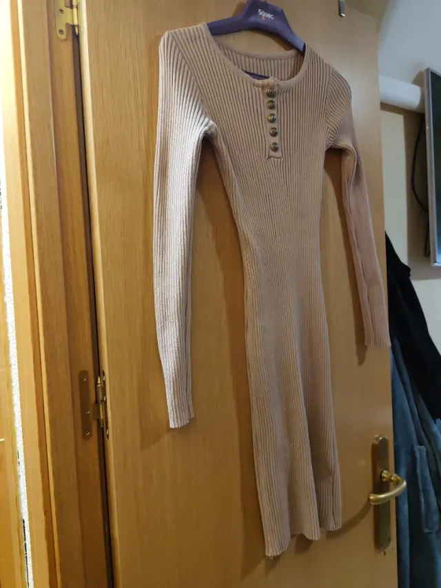 Vestido punto manga larga beige talla única