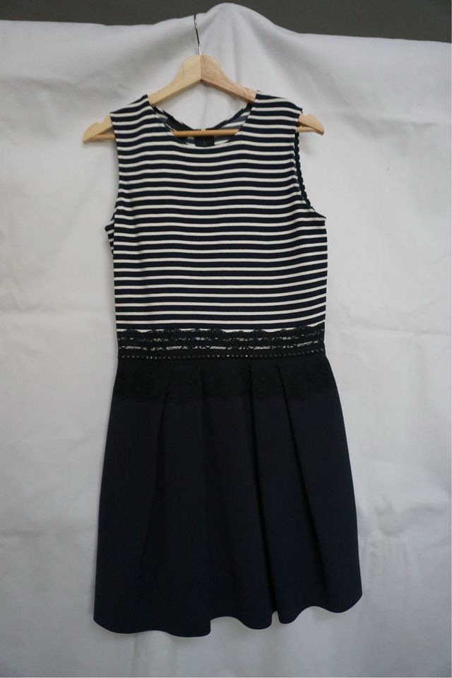 Vestido Rallado Azul Marino y Blanco