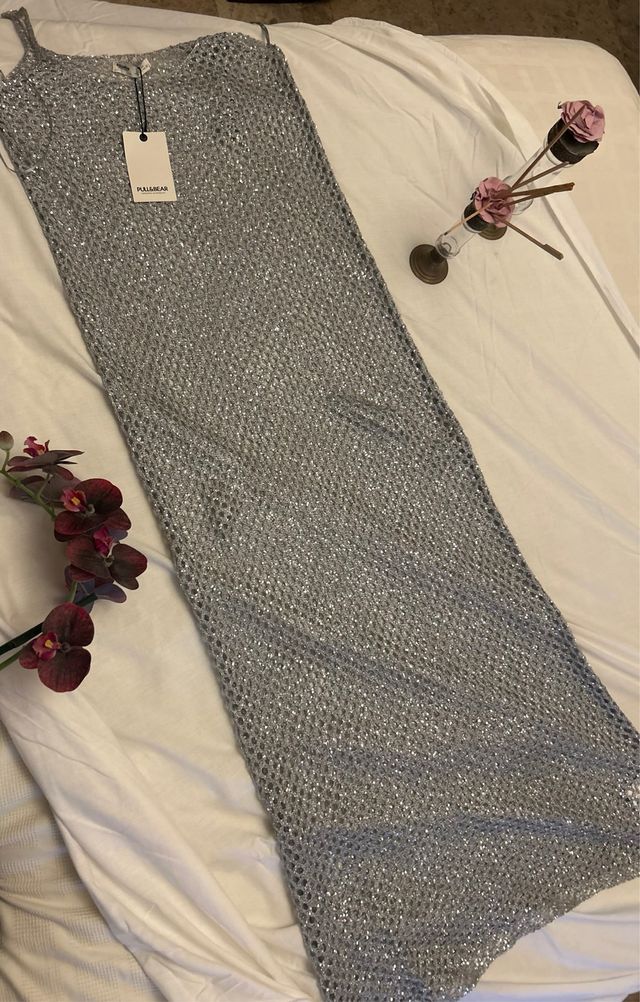 Vestido rejilla plateado Pull&Bear Talla L
