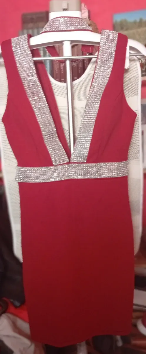 Espectacular Vestido Rojo. Fina Pedrería en Plata