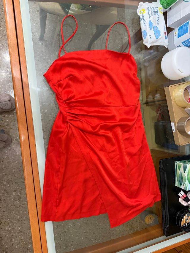 Vestido rojo corto satinado