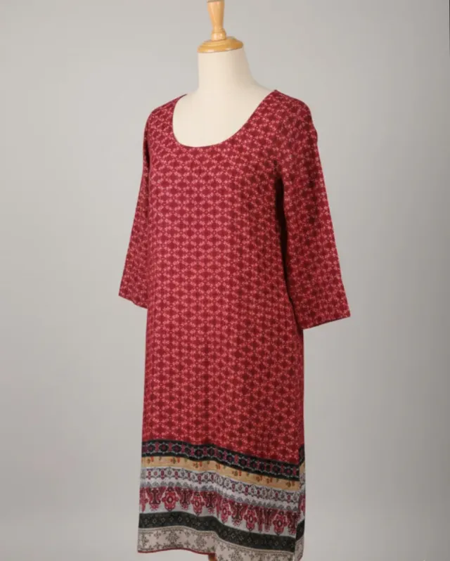 Vestido Rojo Estampado Boho Chic Cenefa Étnica
