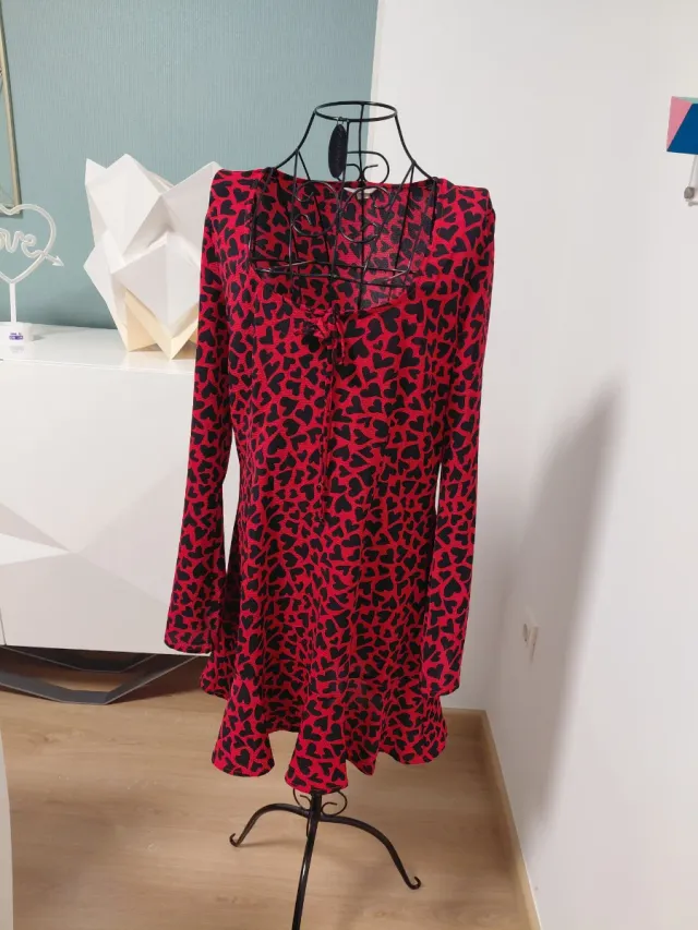 Vestido rojo y negro con corazones Talla 42