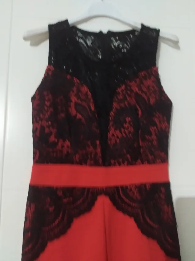 Detalles del productoElegante vestido de fiesta en color rojo y negro, con detalles de encaje.