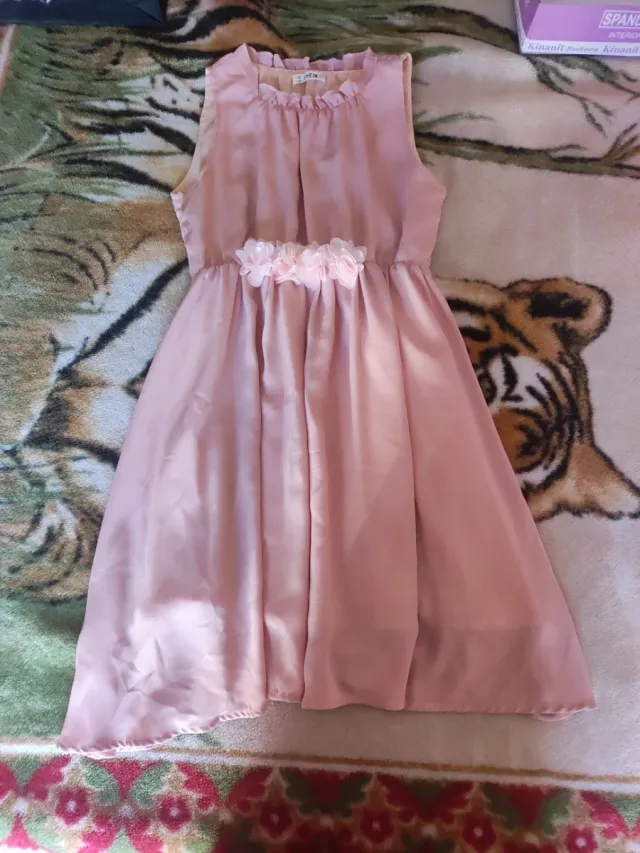 Detalles del productoVestido rosa con detalle de flores en la cintura, ideal para eventos.