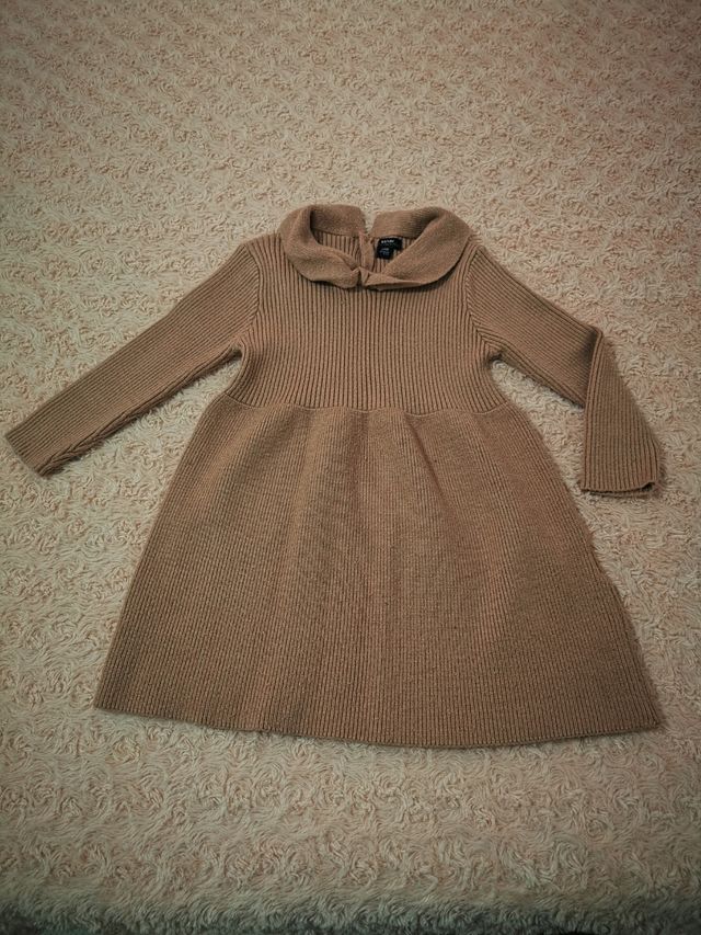 Vestido de punto en color rosa de la marca Kiabi, talla 2 años. Ideal para los días más frescos. - Manga larga. - Cuello Peter Pan. - Tejido de canalé.