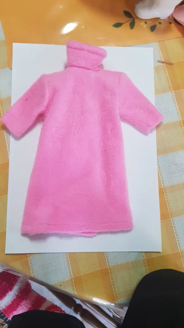 Vestido rosa de tela suave para muñeca Nancy. - Diseño de manga larga. - Cuello alto.