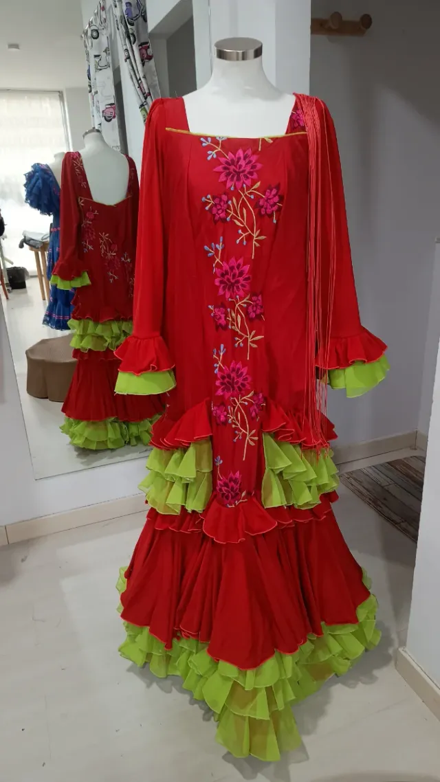 Vestido Sevillana Rojo y Verde