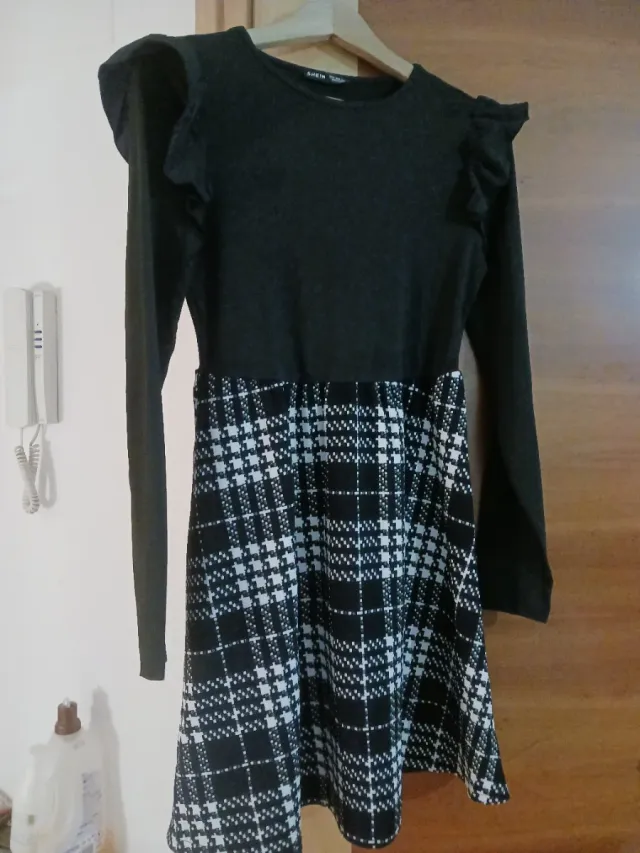 Vestido SHEIN cuadros blanco y negro