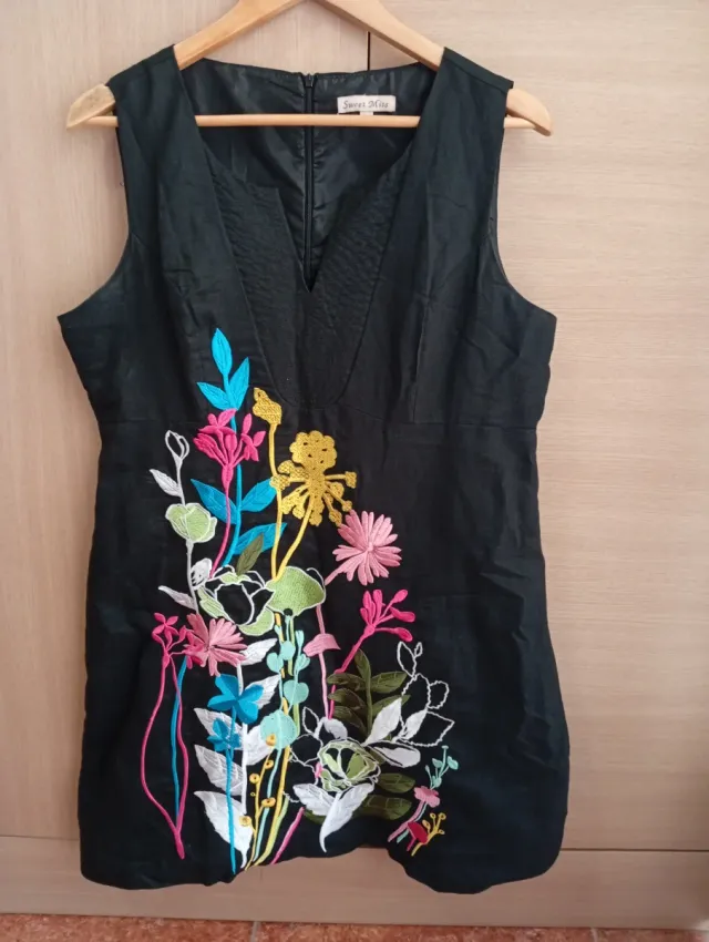 Vestido Sweet Miss Negro Flores Bordadas
