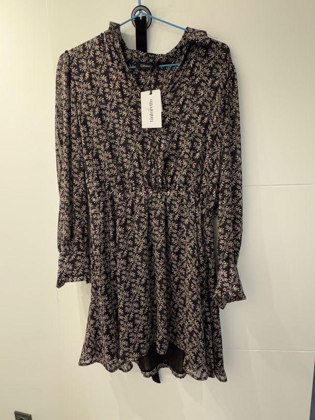 Vestido Tintoretto floral negro y morado
