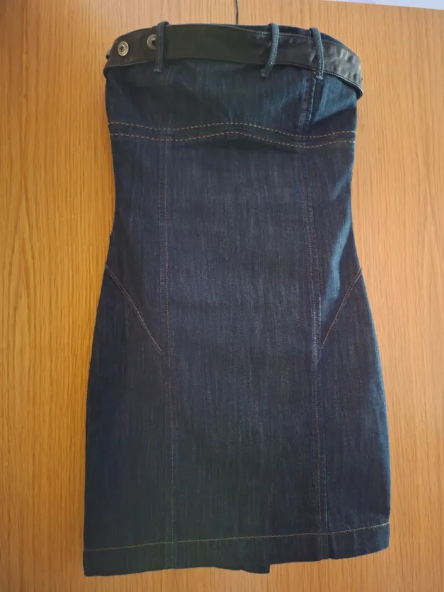 Vestido vaquero Salsa sin tirantes.