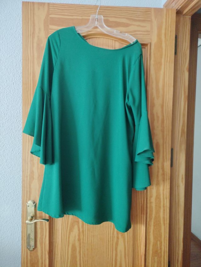 Vestido verde botella con mangas acampanadas