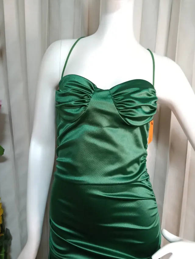 Vestido verde satinado con tirantes