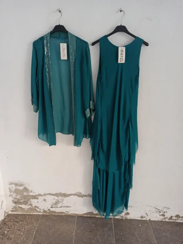 Vestido y Chaleco Gasa Turquesa Talla Única