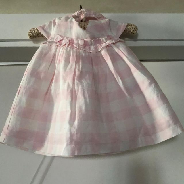 Conjunto de vestido y culotte con estampado de cuadros. - Vestido con volantes en el pecho. - Mangas cortas. - Cuello con volante.