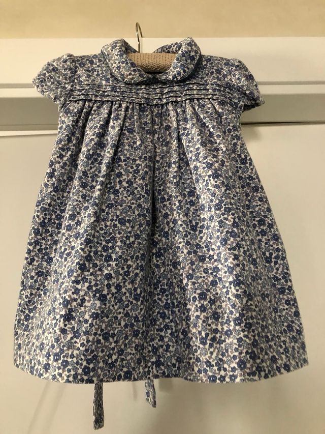 Detalles del productoConjunto de vestido y culotte con estampado floral en tonos azules. El vestido tiene cuello camisero y mangas cortas.