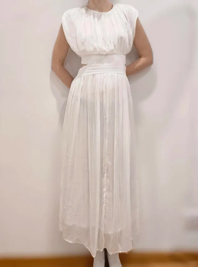 Vestido MIDI Zara Blanco Plisado Talla XS