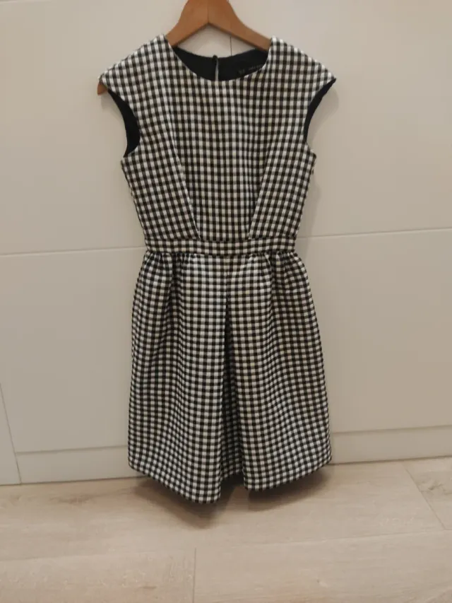 Vestido Zara Cuadros Blanco y Negro Talla XS