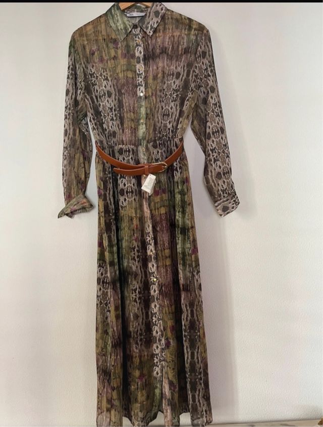 Vestido Zara estampado marrón y verde
