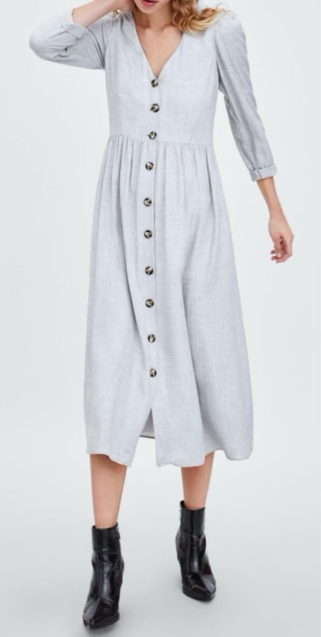 Vestido Zara gris y blanco