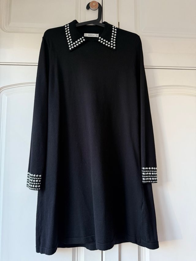 Vestido Zara Knit Negro Tachuelas Plateadas