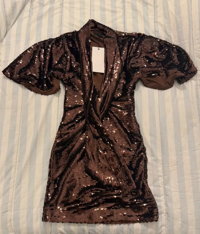 Vestido Zara lentejuelas marrón y negro