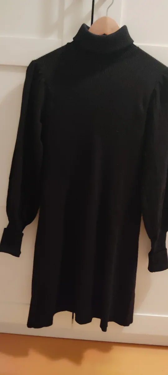 Vestido Zara Negro Cuello Alto Manga Abullonada