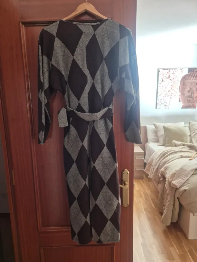 Vestido Zara Rombo Marrón y Gris