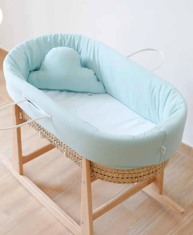 Detalles del productoVendo vestidura de capazo o moisés en perfecto estado. Color menta. Ojo - el cojin no va incluido. Es vestidura + sabana bajera + también adjunto funda para cambiador, mismo estilo de sabana. Algodón y tela de muy buena calidad. Todo es de marca Estrellita la Valiente.