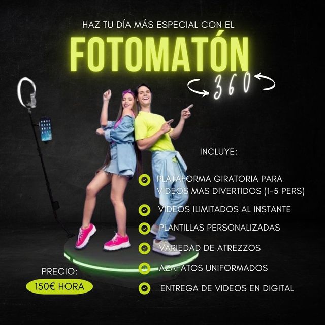 Con nuestro Fotomaton360, tus invitados podrán posar, bailar y brillar mientras una cámara los graba en espectaculares tomas circulares en slow motion. 💃🕺