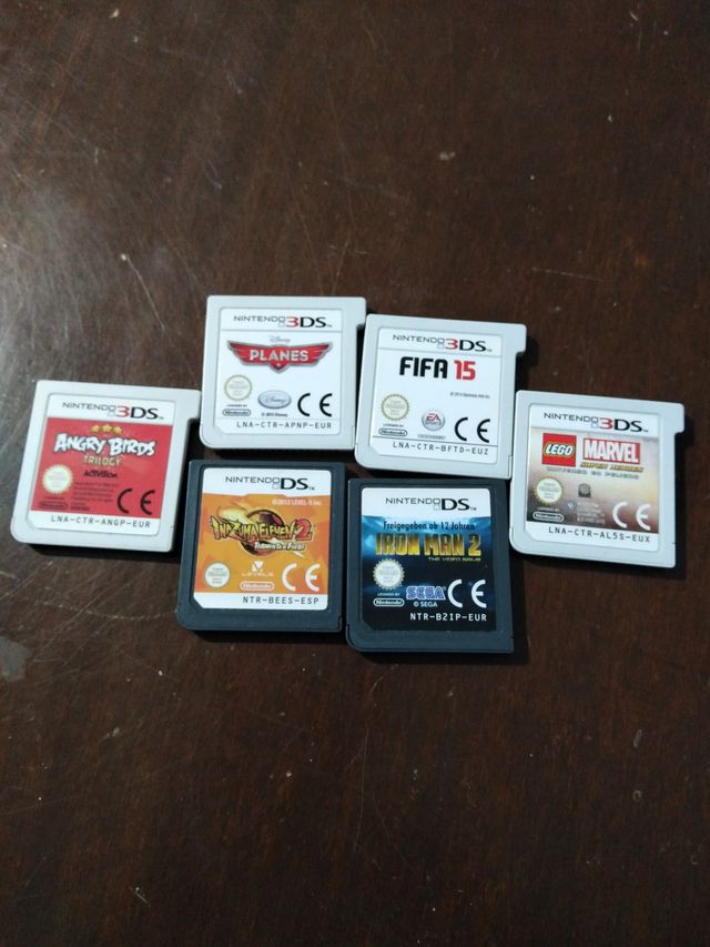 Videojuegos de Angry birds, lego marvel súper heroes, inazuma eleven 2 tormenta de fuego, planes, fifa 15 y Iron Man 2.