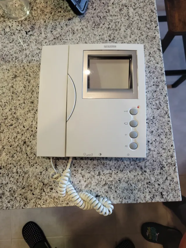 Videoportero de la marca FERMAX en color blanco. No está usado pero lleva años colgado