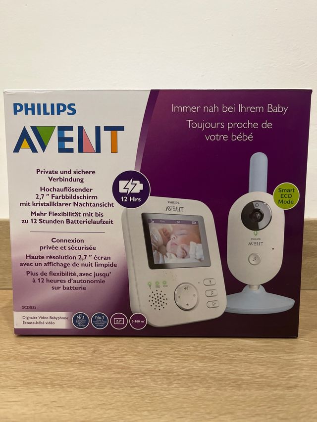 Detalles del productoVigilabebés digital con vídeo de Philips Avent. Ofrece una conexión privada y segura.