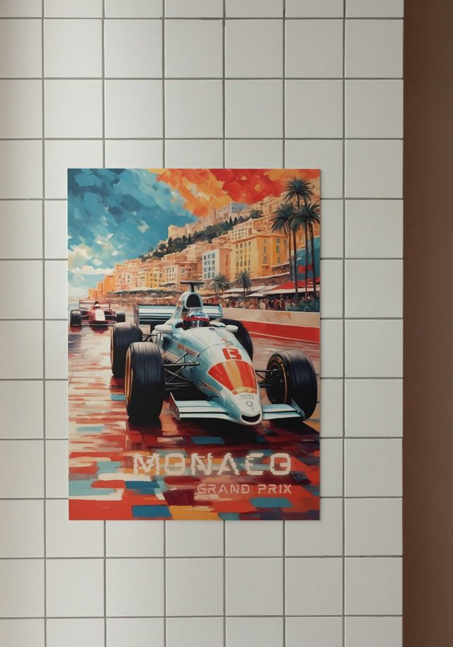 póster, cartel, cuadro, A2, decoración, interiorismo, arte, diseño, retro, vintage, nostalgia, monaco, formula 1, grand prix