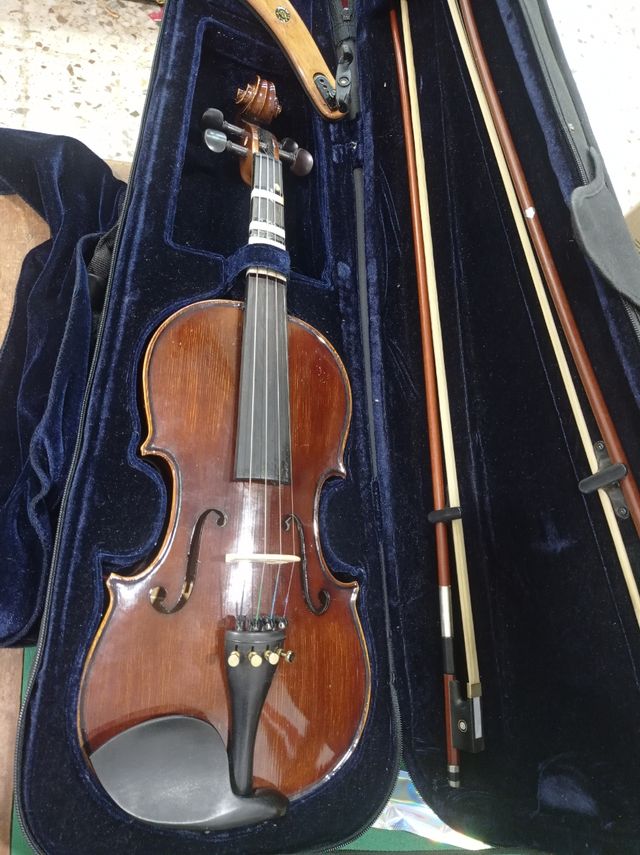 Detalles del productoVendo violín en perfecto estado, con un diseño clásico y elegante. Incluye dos arcos. - Violín de madera pulida. - Dos arcos para tocar. - impoluto. Funda rígida.