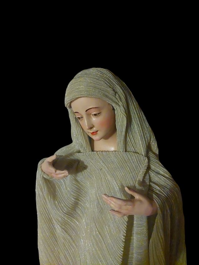Figura de la Virgen de 60cm, con brazos móviles y candelero de madera, se vende sin vestimentas, para el envío iría desmontada del candelero para mayor seguridad.