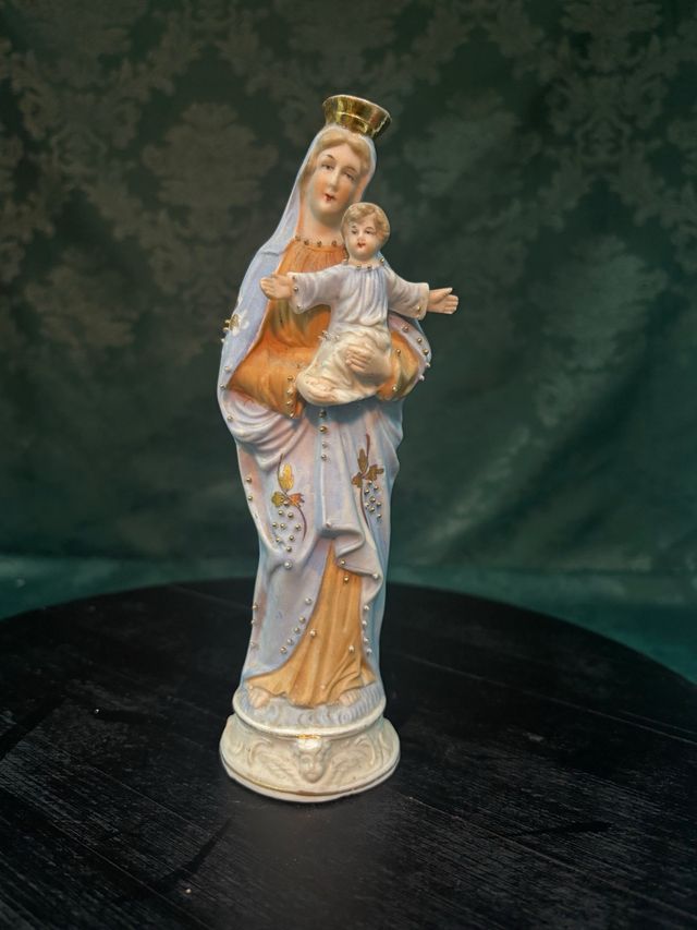 Detalles del productoFigura de la Virgen María Auxiliadora hecha de biscuit.