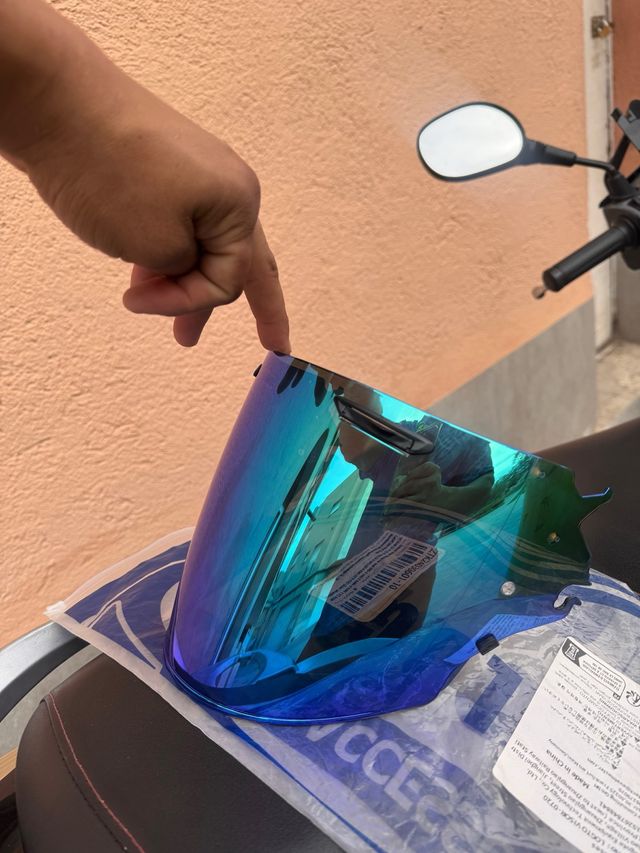 Visera de repuesto para casco Arai con acabado de espejo en tonos azules y morados. - Diseño iridiscente. - Compatible con modelos Arai. - Fabricada en policarbonato.