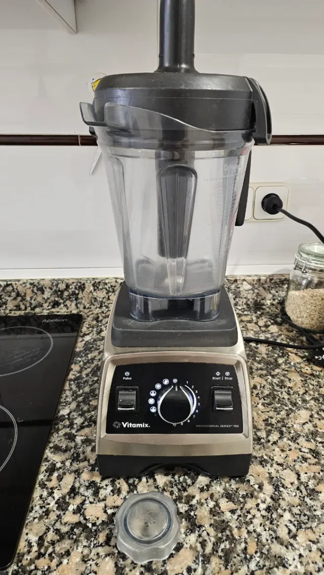 Batidora Vitamix Professional Series 750 en excelente estado. Motor muy potente, 5 programas automáticos, control de velocidad variable y función pulse. Perfecta para preparar smoothies, cremas, sopas calientes, salsas o mantequillas de frutos secos. Incluye prensador original. Funciona a la perfección y es de calidad profesional, ideal para uso doméstico o intensivo.