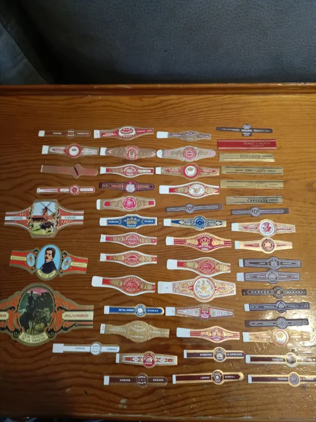 Colección de vitolas antiguas de cigarros, perfectas para coleccionistas. - Variedad de diseños y marcas.