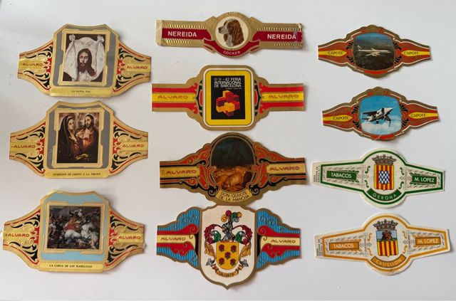 11 Vitolas de colección. Fábrica de tabacos. Alvaro. Vitola Nereida Cocker. 2 Vitolas colección manuel lopez luis. 2 Vitolas colección Pedro Capote.