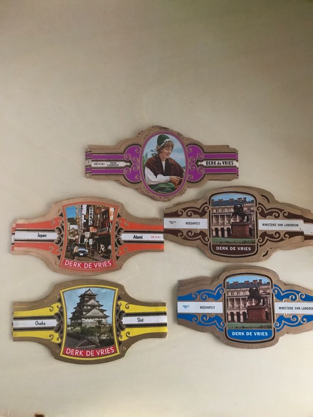 Colección de vitolas de cigarro de la marca Derk de Vries. 5 Series de 10 unidades
