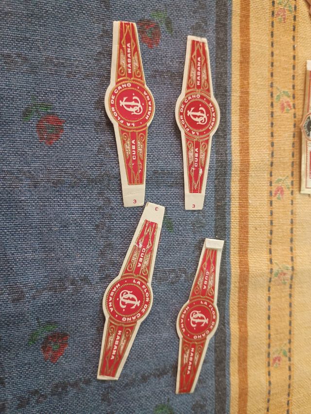 Se venden cinco vitolas de cigarros La Flor de Cano de Habanas. Son etiquetas de cigarros antiguas. - Están en buen estado. - Ideales para coleccionistas.