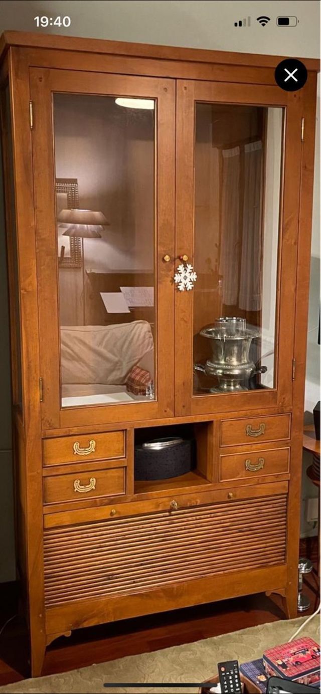 vitrina con persiana y cuatro cajones color cerezo frances