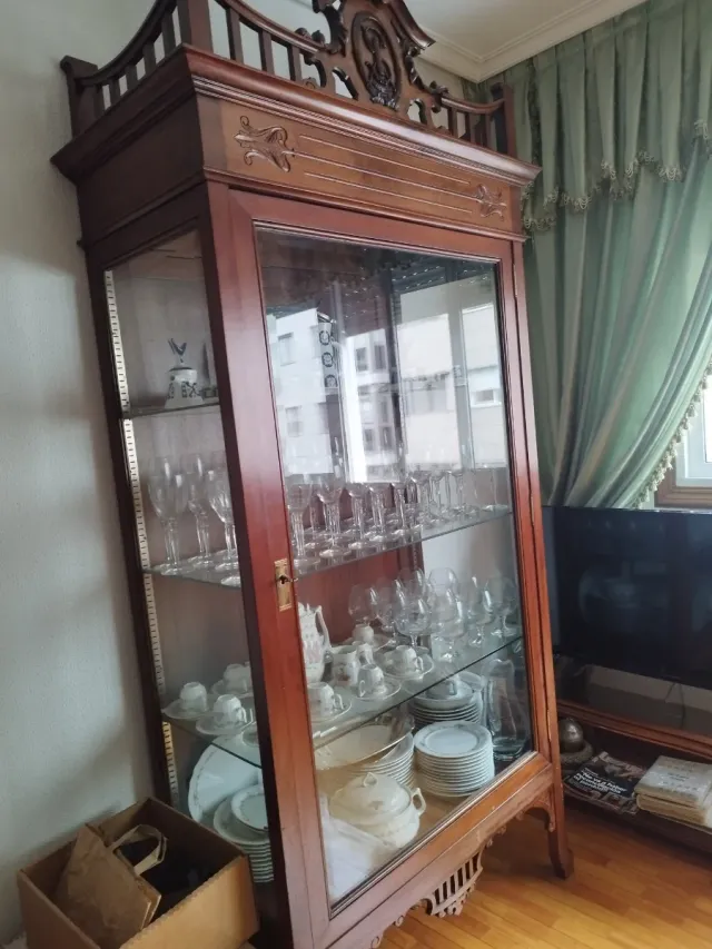 Vitrina antigua de madera y cristal