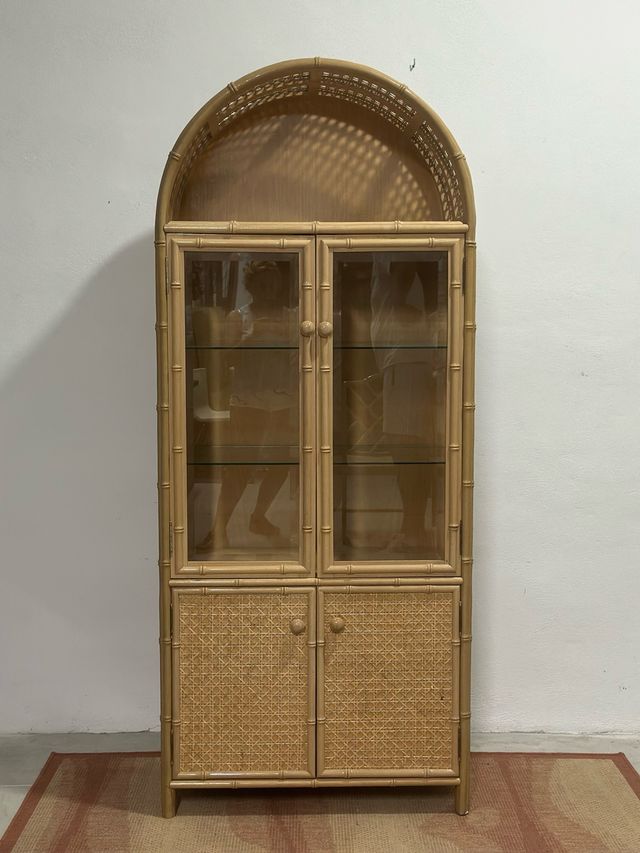 Vitrina de bambú con puertas de cristal