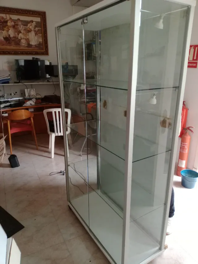 Detalles del productoVitrina de cristal con un diseño moderno y elegante, ideal para exhibir objetos.