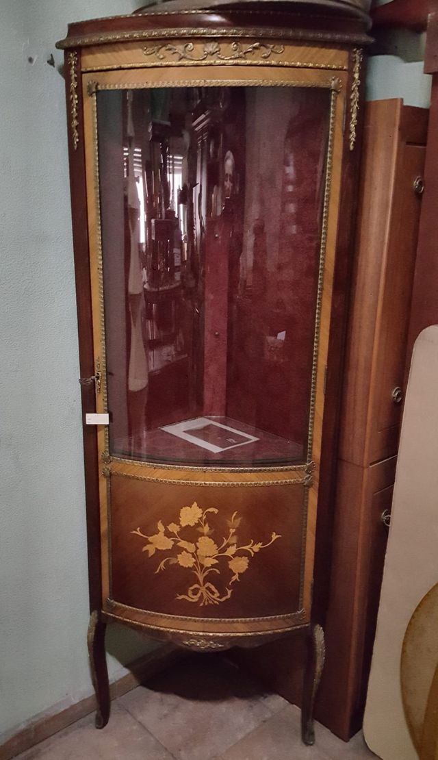 VITRINA ESQUINERA MARINER MADERA Y BRONCE AÑOS 70